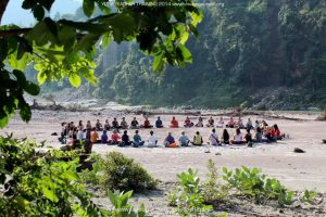 写真は私がインドにトレーニングへ行った際のものですが、ガンジス河沿いで輪になってした瞑想!この時間が今でも忘れられません。